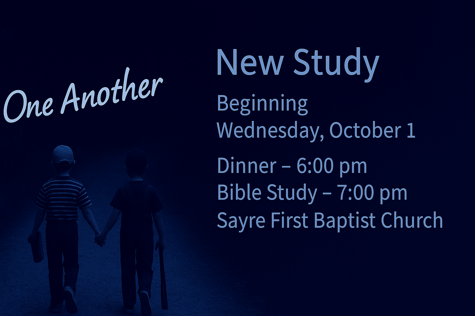 We’re excited to announce a new Wednesday evening Bible study beginning Wednesday, October 1st at Sayre First Baptist Church!